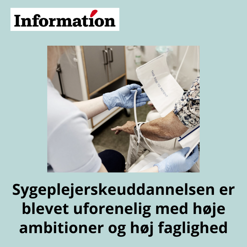 Diskursen om sygeplejersker må ændres, og der må tages et større ansvar på uddannelsesinstitutionerne. Frygten for de faldende ansøgertal må ikke medvirke til, at det faglige niveau sænkes. Det skriver sygeplejerske Sophie Heiberg Jørgensen i en kronik i dagbladet Information.