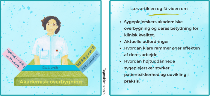 At synliggøre sygeplejersker med akademisk overbygning og deres bidrag til klinisk kvalitet, at beskrive rammer der understøtter deres funktion og pege på barrierer og faldgruber identificeret i litteraturen.