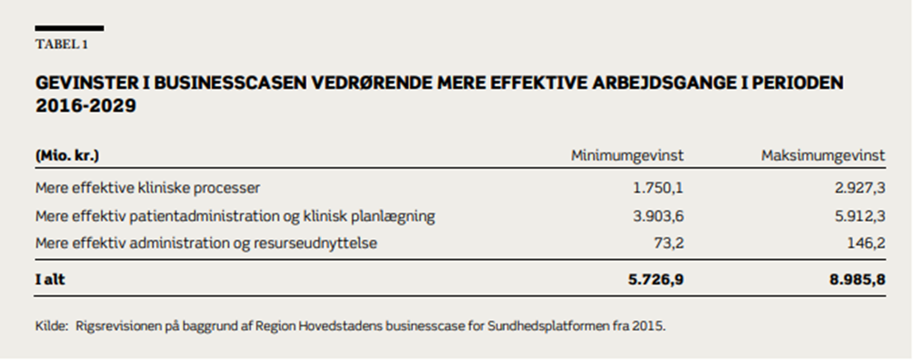 🔹Manglende gevinstrealisering på mellem 5,7 og 8,9 mia. kr. som var forudsat i businesscasen bag beslutningen om at indføre SP.